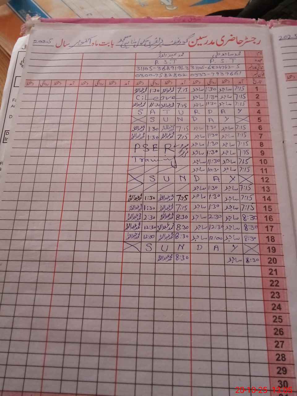 | Name: Mu**** Sa**** Al**** Designation: (School Headmaster's/Headmistress's) PST Phone/Cell Number: 03**** |