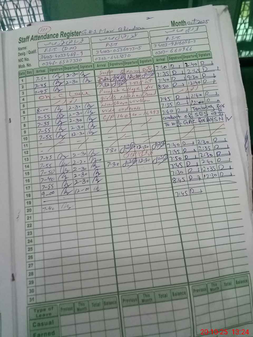 | 34**** | Za**** Iq**** | PST | Regular | 0 | 0 | 0 | 0 | 0 | 0 | 0 | 0 | 0 | Exam Duty |