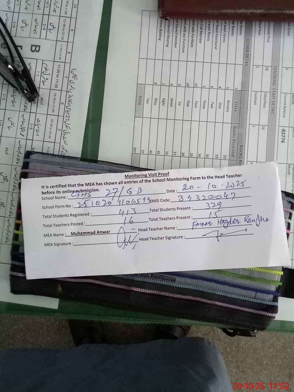 | EMIS Code: 39320047 | Name of School: GHS 27/G.D | |||