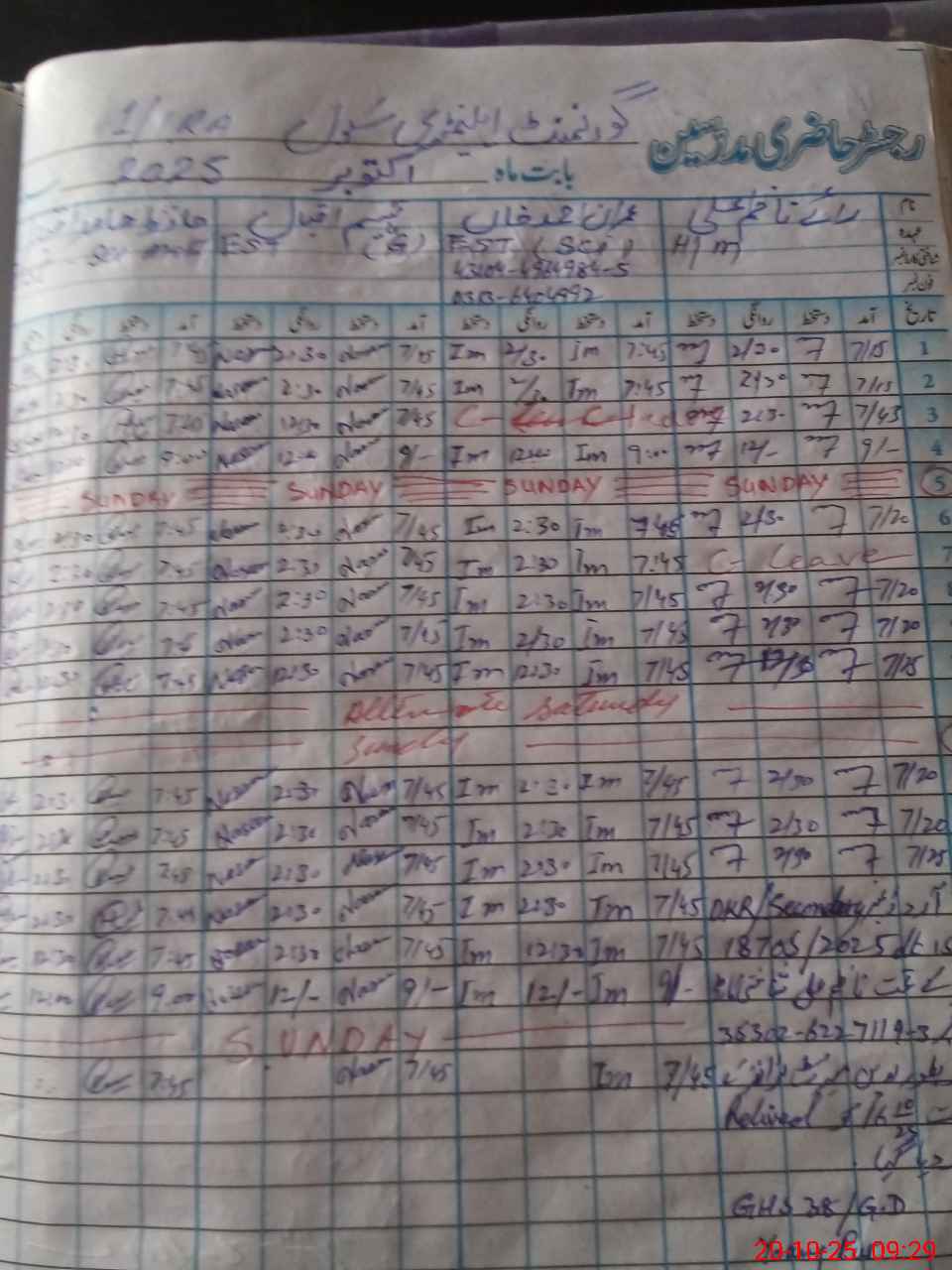 | CNIC | Full Name | Designation | R/C | Absence During Last Calender Month |