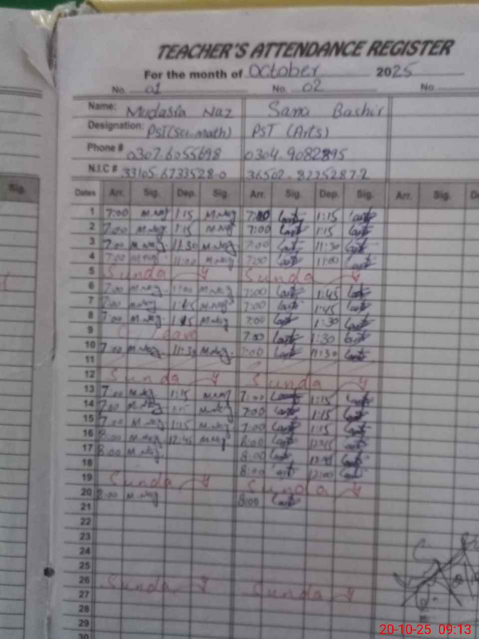 | Name: MU**** NA**** Designation: (School Headmaster's/Headmistress's) PST Phone/Cell Number: 03**** |