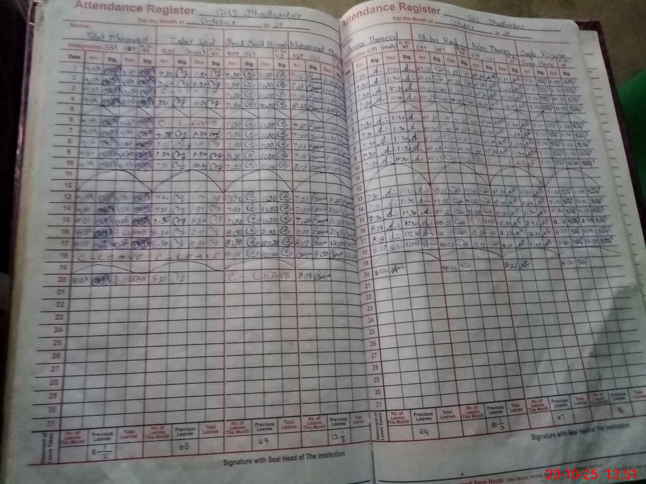 | CNIC | Full Name | Designation | R/C | Absence During Last Calender Month |