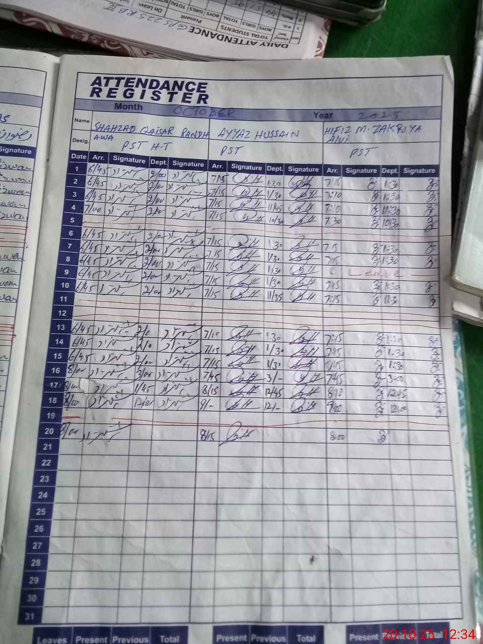| Name: SH**** QA**** Designation: (School Headmaster's/Headmistress's) PST Phone/Cell Number: 03**** |