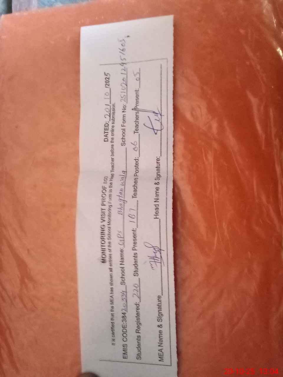 | EMIS Code: 38420334 | Name of School: GPS BHAGTAN WALA | |||