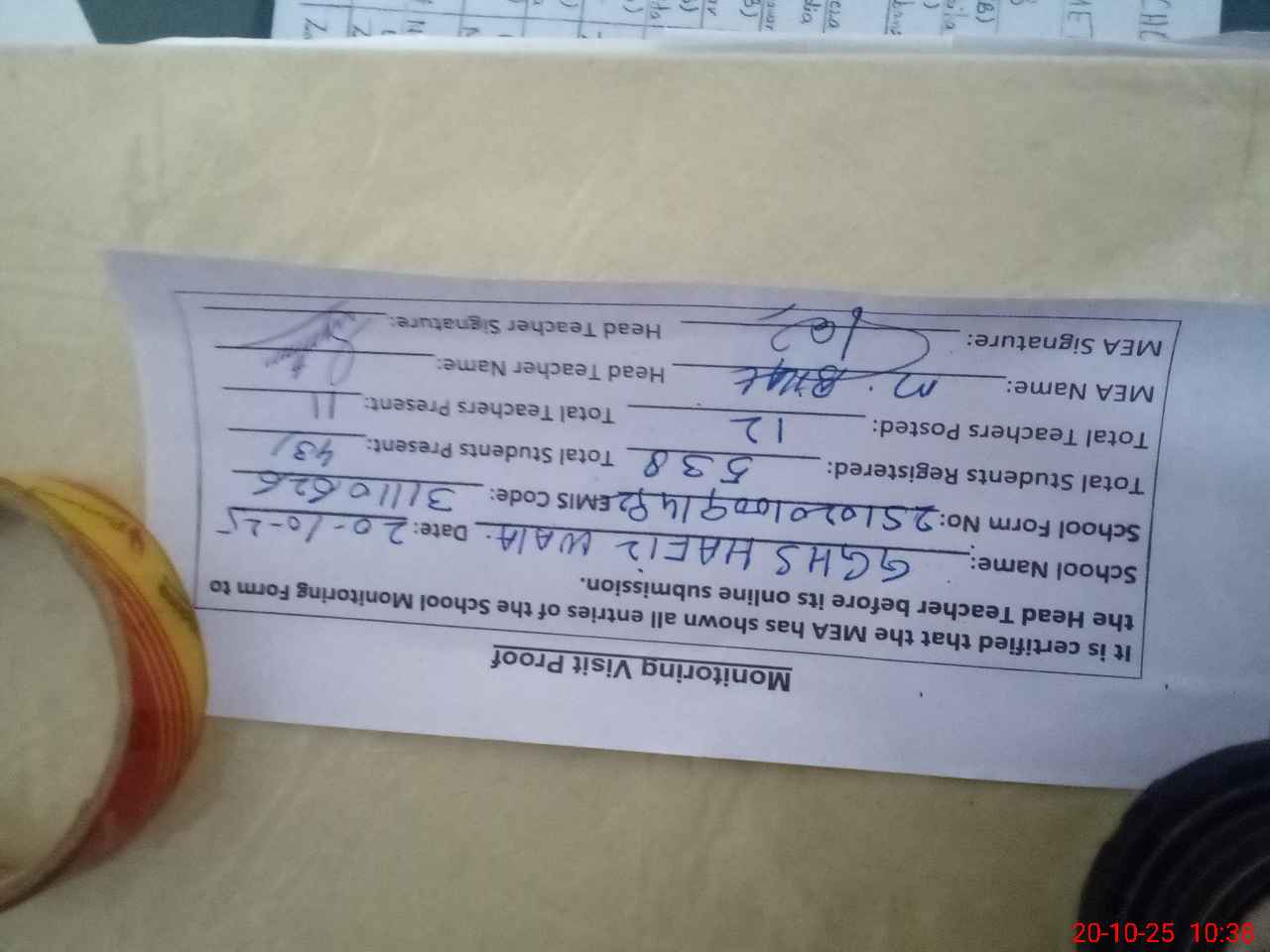 | Certified that this School was Inspected by the Undersigned MEA/DMO Today and the Information Stated Above is as Per Record. | |||||
