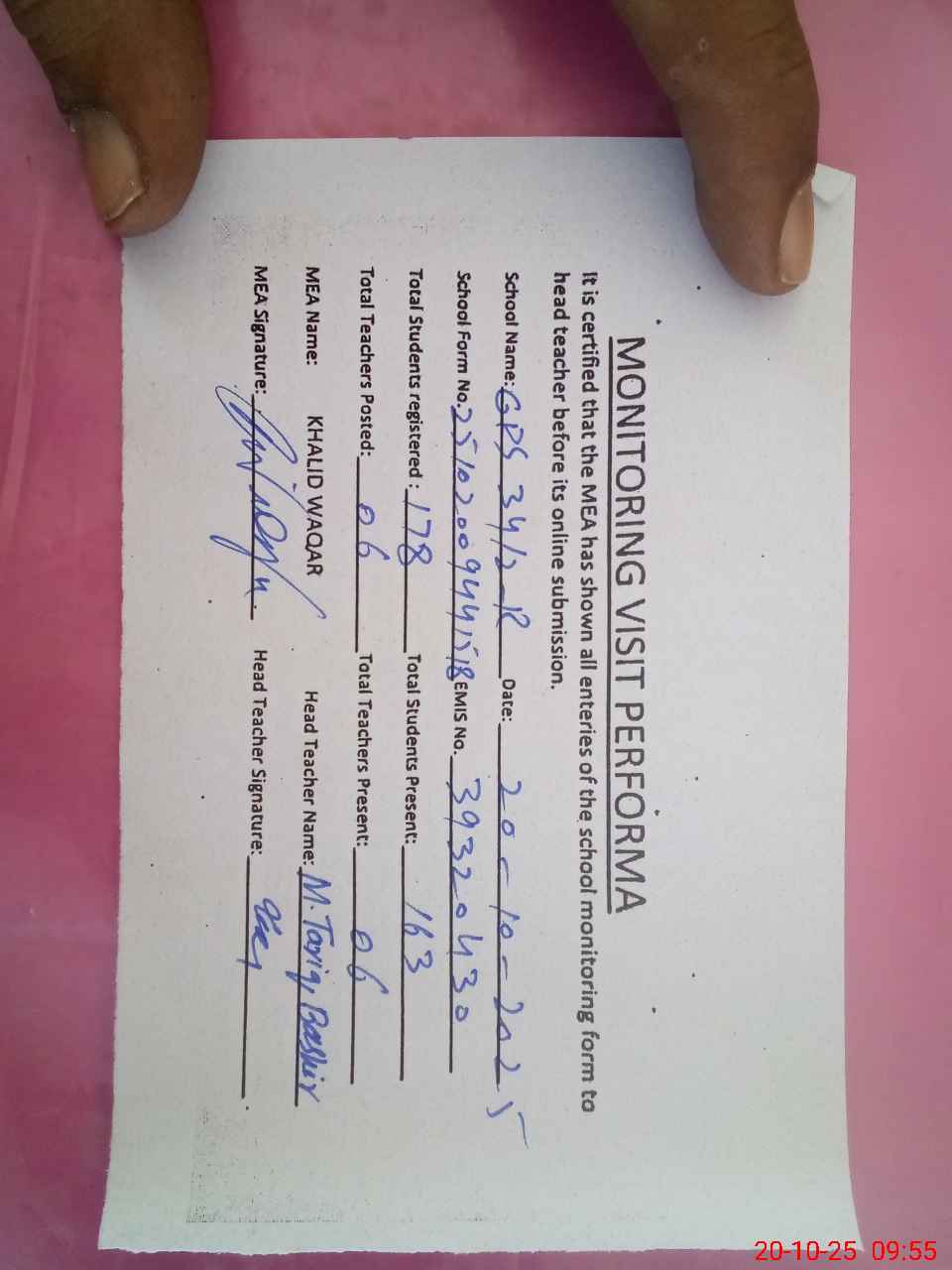 | EMIS Code: 39320430 | Name of School: GPS CHAK NO. 34/ 2-RA | |||