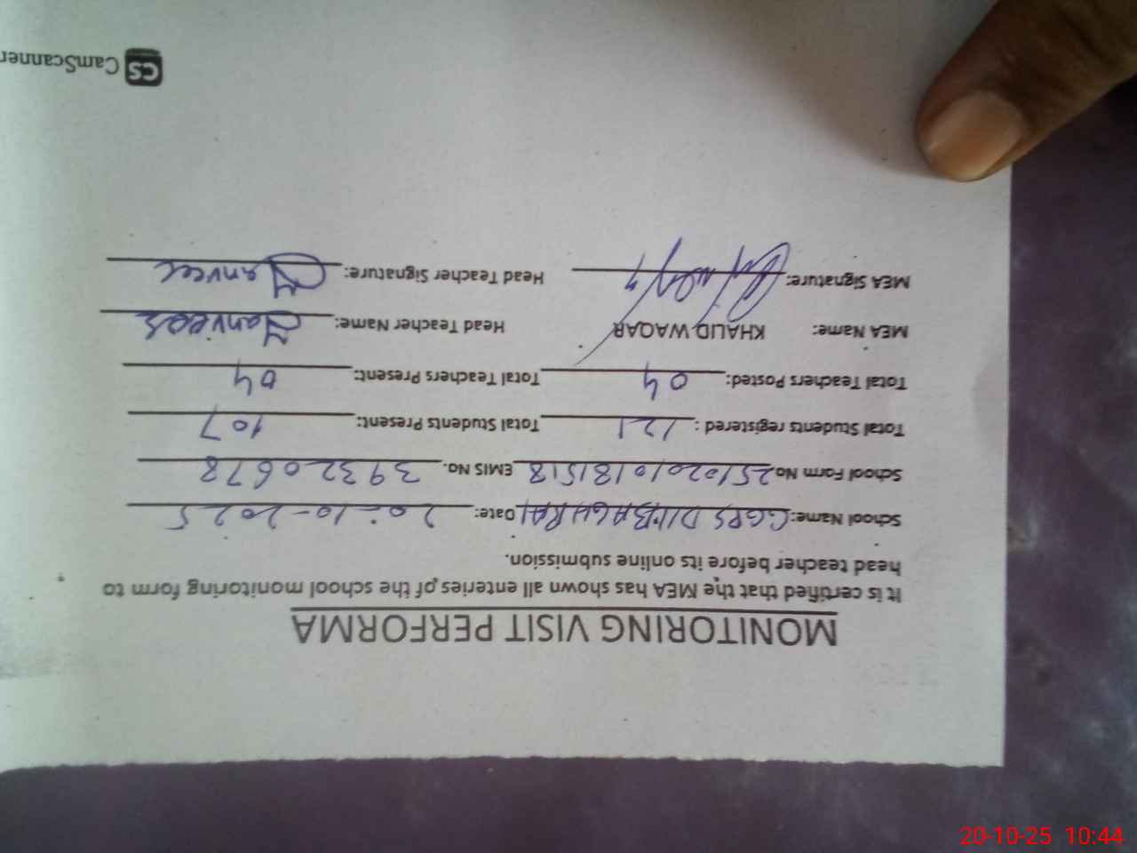 | EMIS Code: 39320678 | Name of School: GGPS DIL BAGH RAI | |||