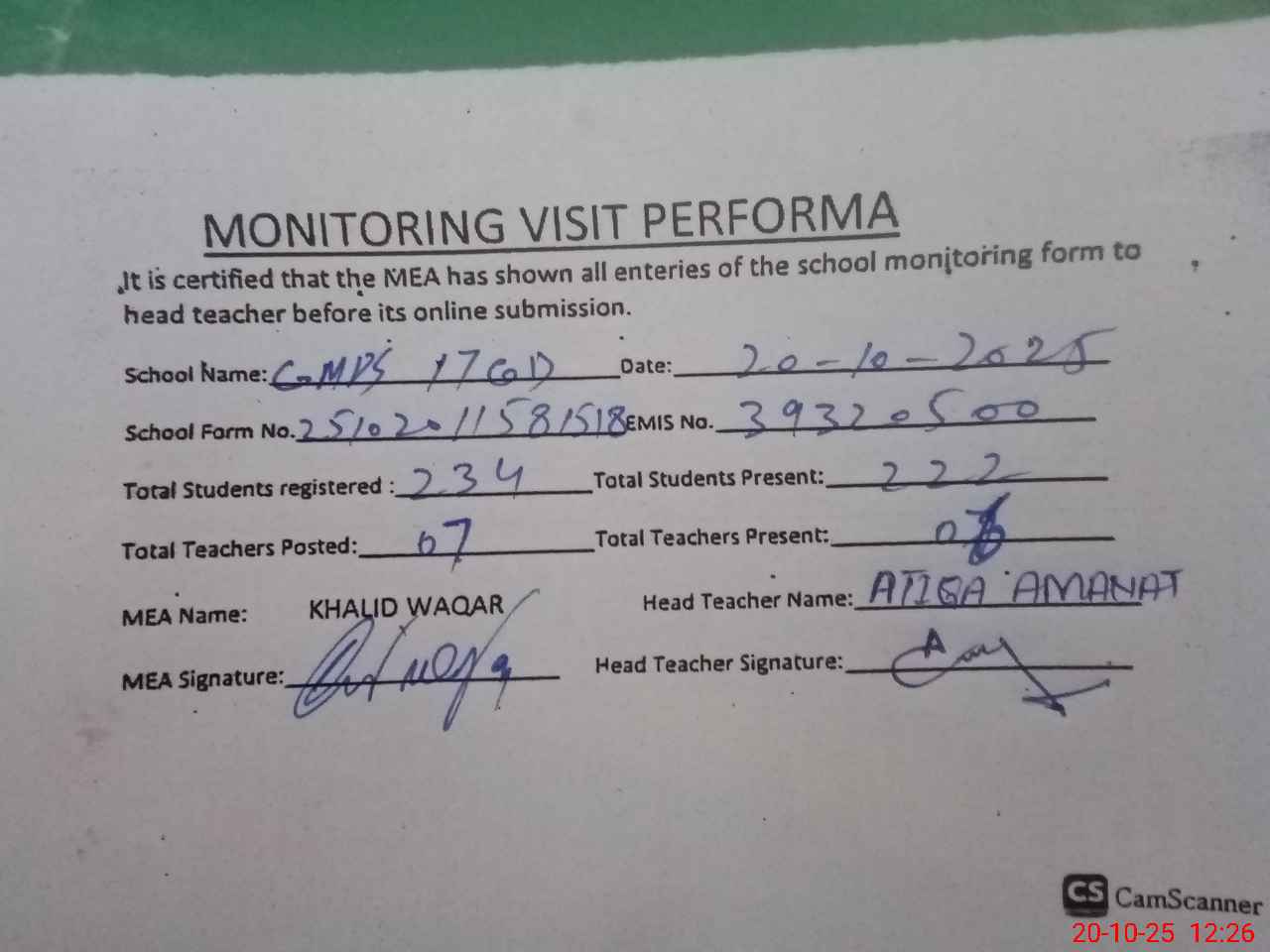 | EMIS Code: 39320500 | Name of School: GMPS 17/G.D | |||