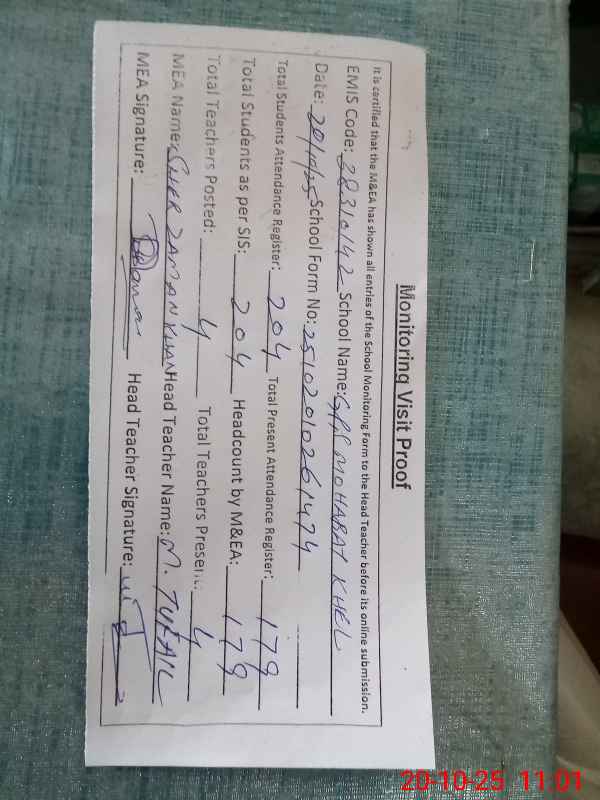 | EMIS Code: 38310142 | Name of School: GPS MOHABAT KHEL | |||