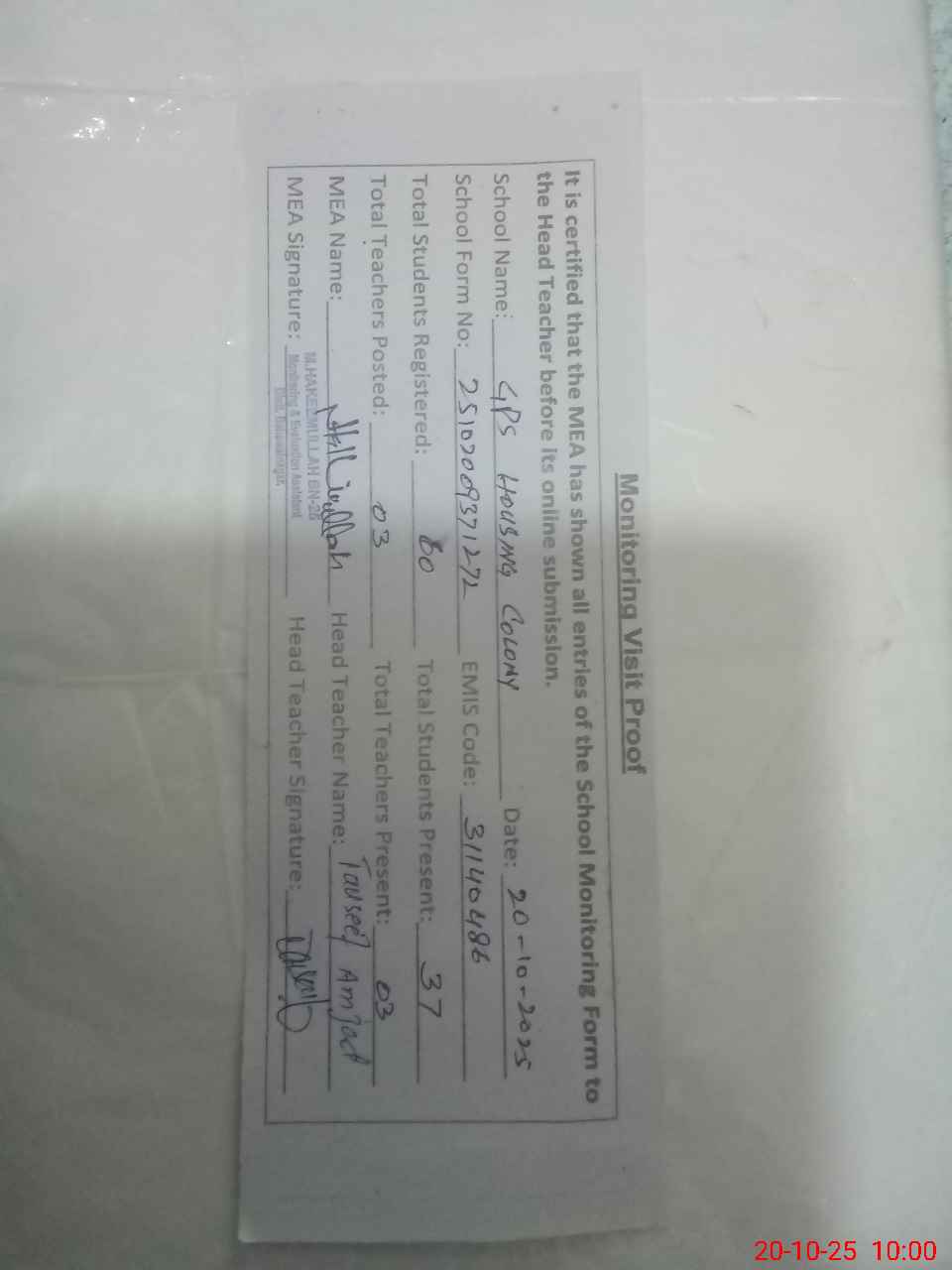 | EMIS Code: 31140486 | Name of School: GPS HOUSING COLONY | |||