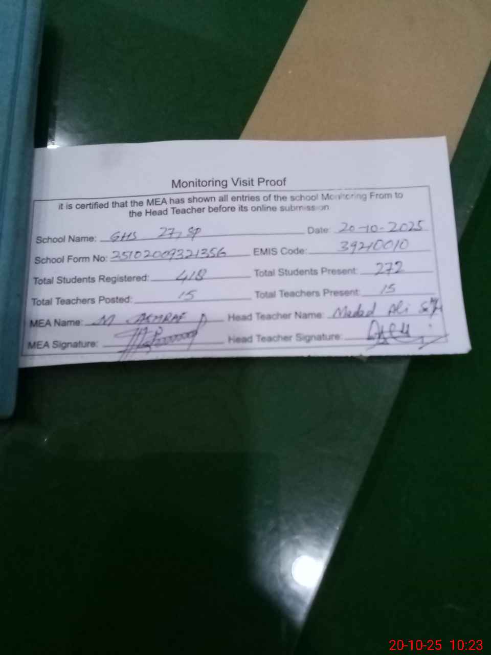 | EMIS Code: 39210010 | Name of School: GHS 27 SP | |||