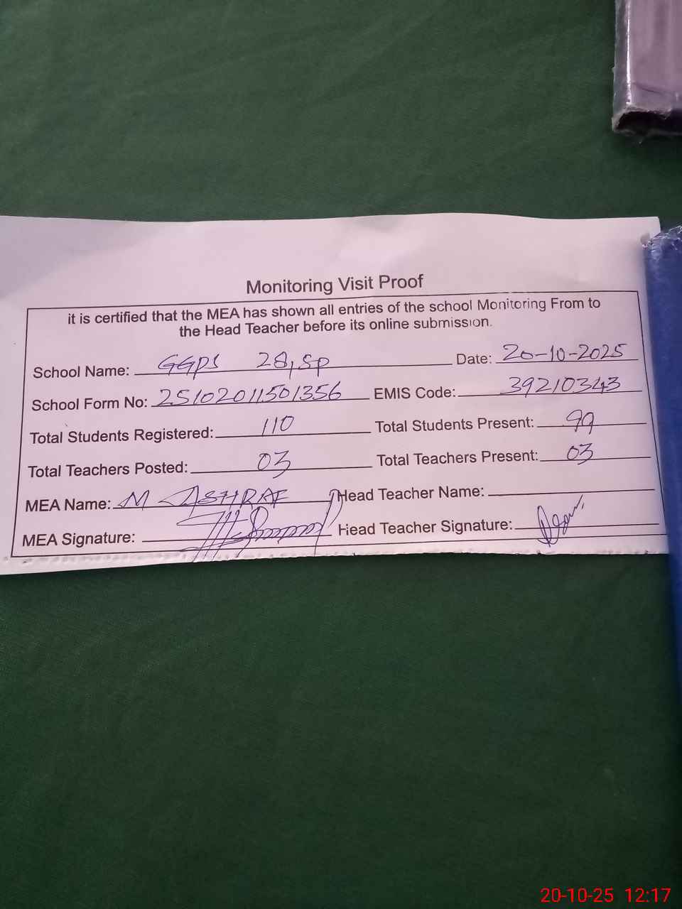 | EMIS Code: 39210343 | Name of School: GGPS 28 SP | |||