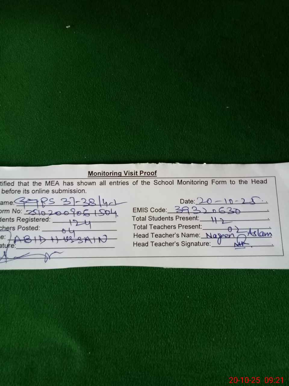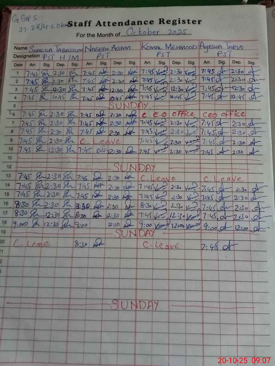 | Remarks (Use Separate Page if Required): NSB and FTF record not available with incharge teacher Head teacher is on casual leave | |||||