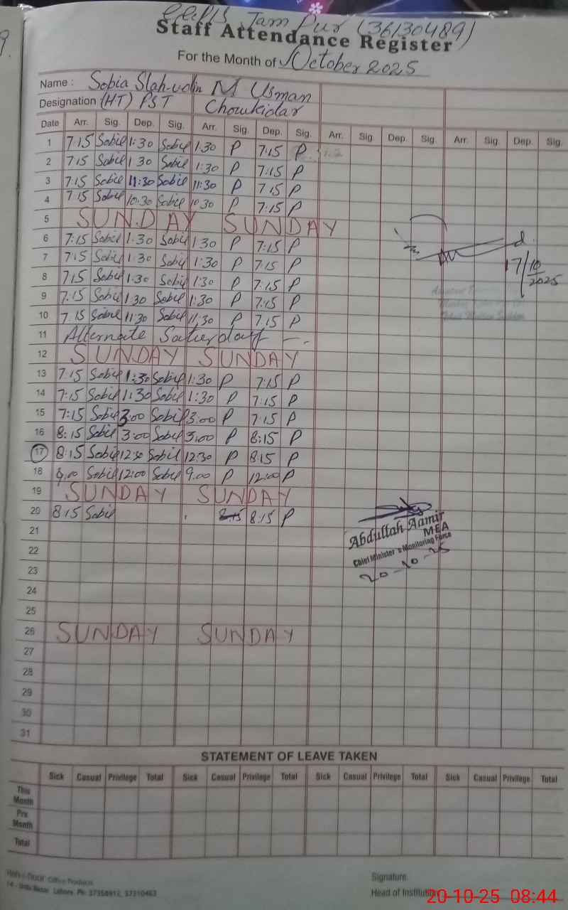 | Name: So**** Sl**** UdDi**** Designation: (School Headmaster's/Headmistress's) HEADMASTER Phone/Cell Number: 03**** |