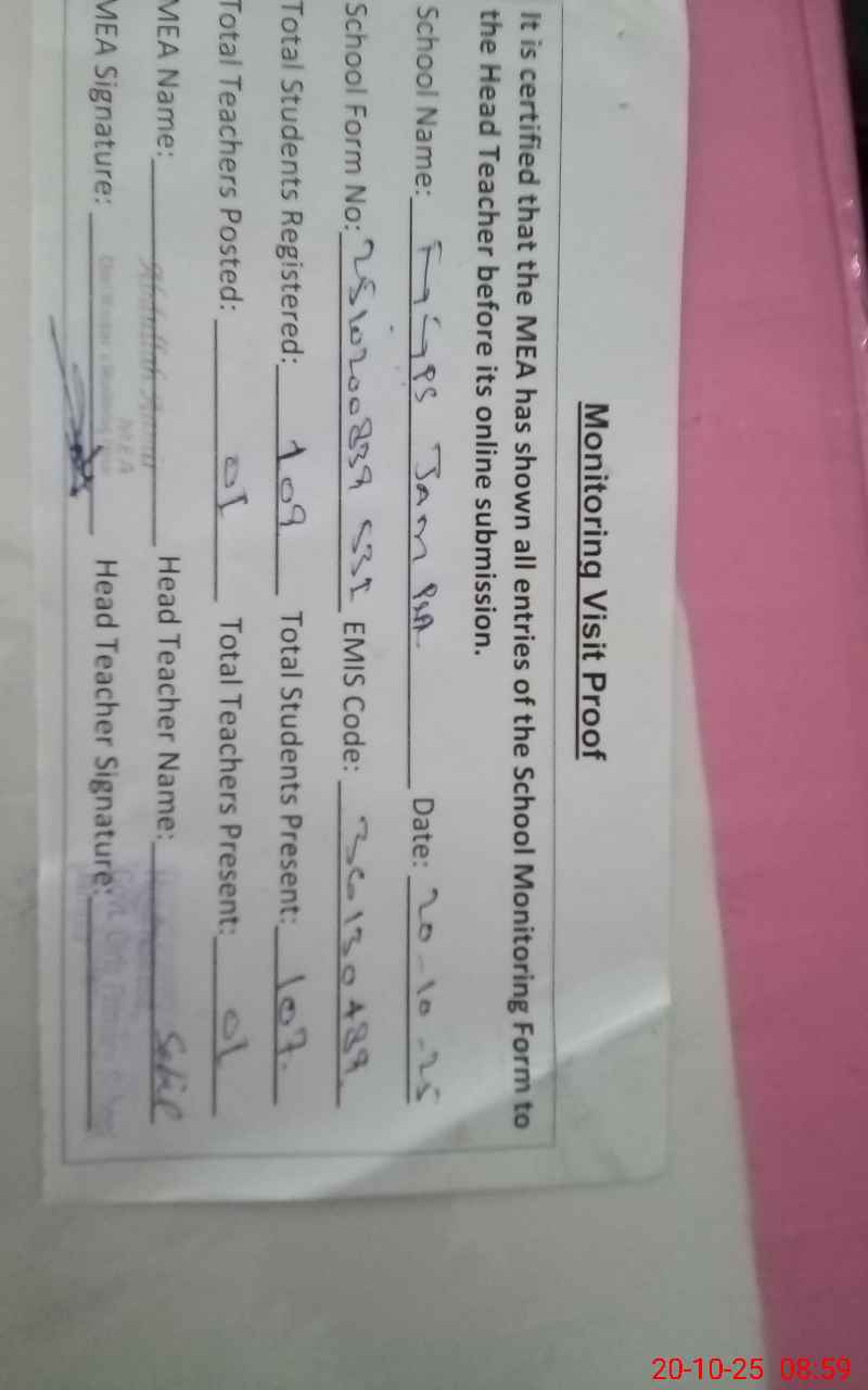 | EMIS Code: 36130489 | Name of School: GGPS JAM PUR | |||