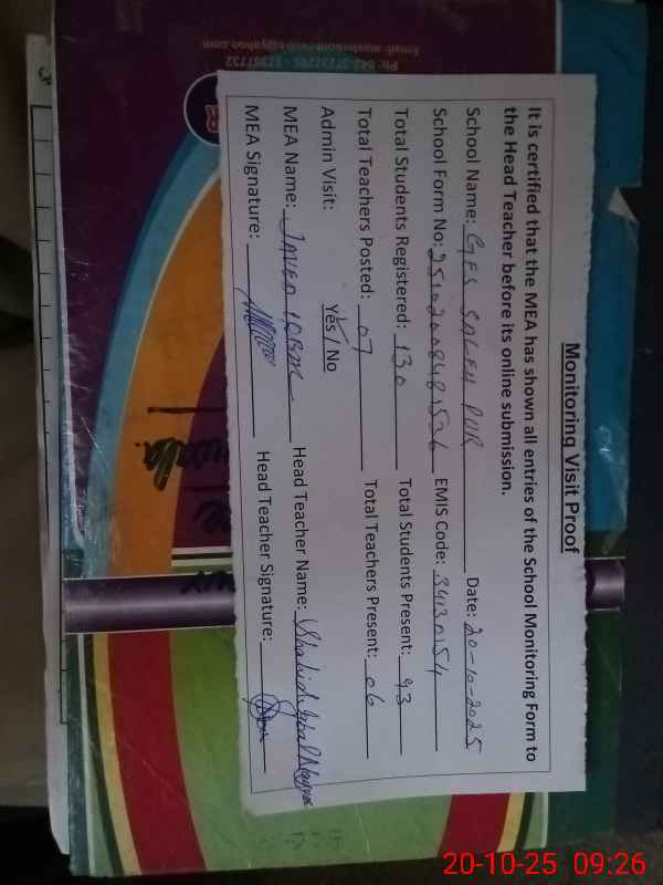 | EMIS Code: 34130154 | Name of School: GES SALEH PUR | |||