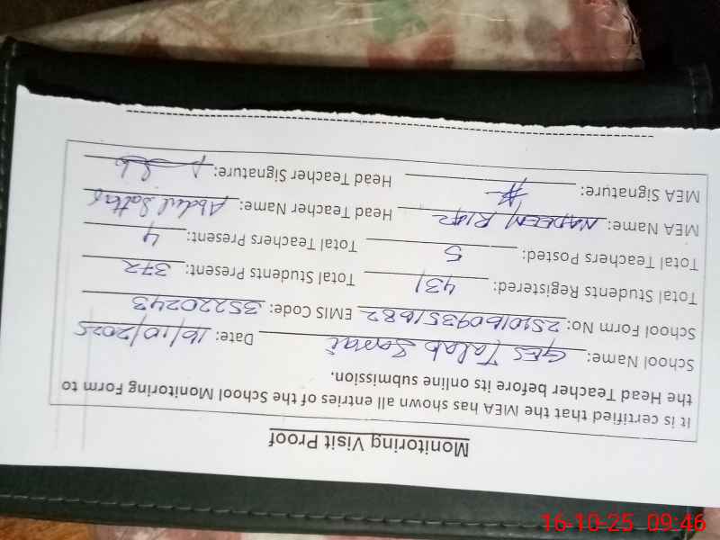 | Certified that this School was Inspected by the Undersigned MEA/DMO Today and the Information Stated Above is as Per Record. | |||||