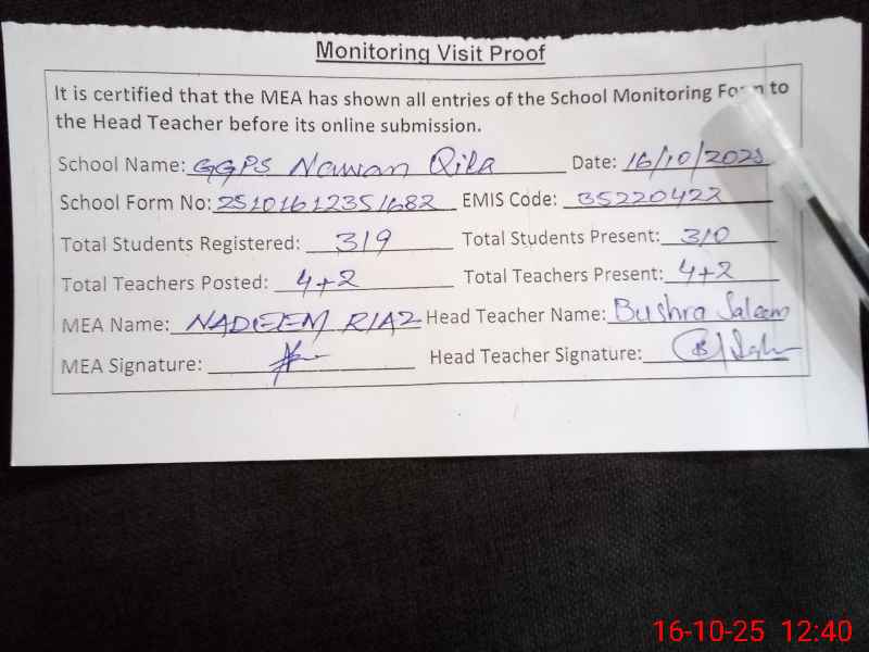 | EMIS Code: 35220422 | Name of School: GGPS NAWAN QILA | |||