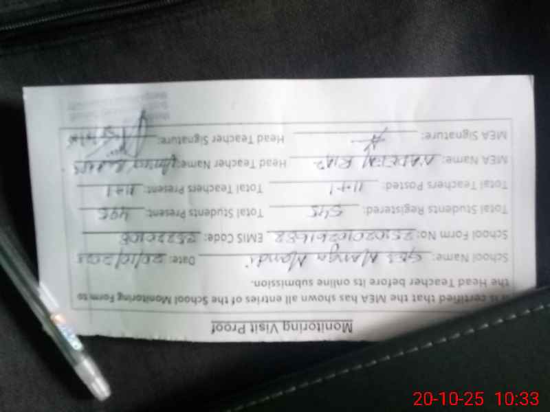 | Attendance Register | Head Teacher | MEA with School | Visit Proof |