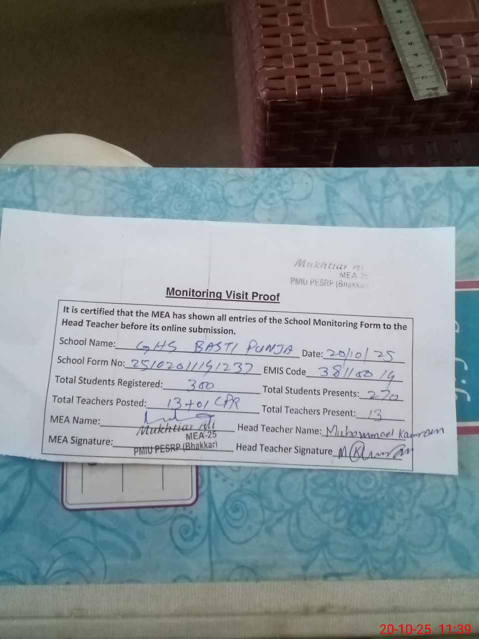 | EMIS Code: 38110014 | Name of School: GHS BASTI MIAN PUNJA | |||
