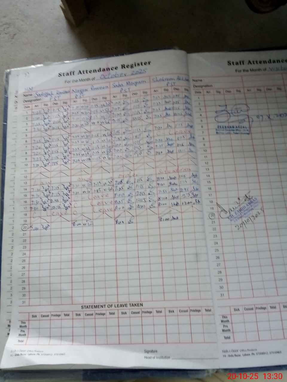 | Attendance Register | Head Teacher | MEA with School | Visit Proof |