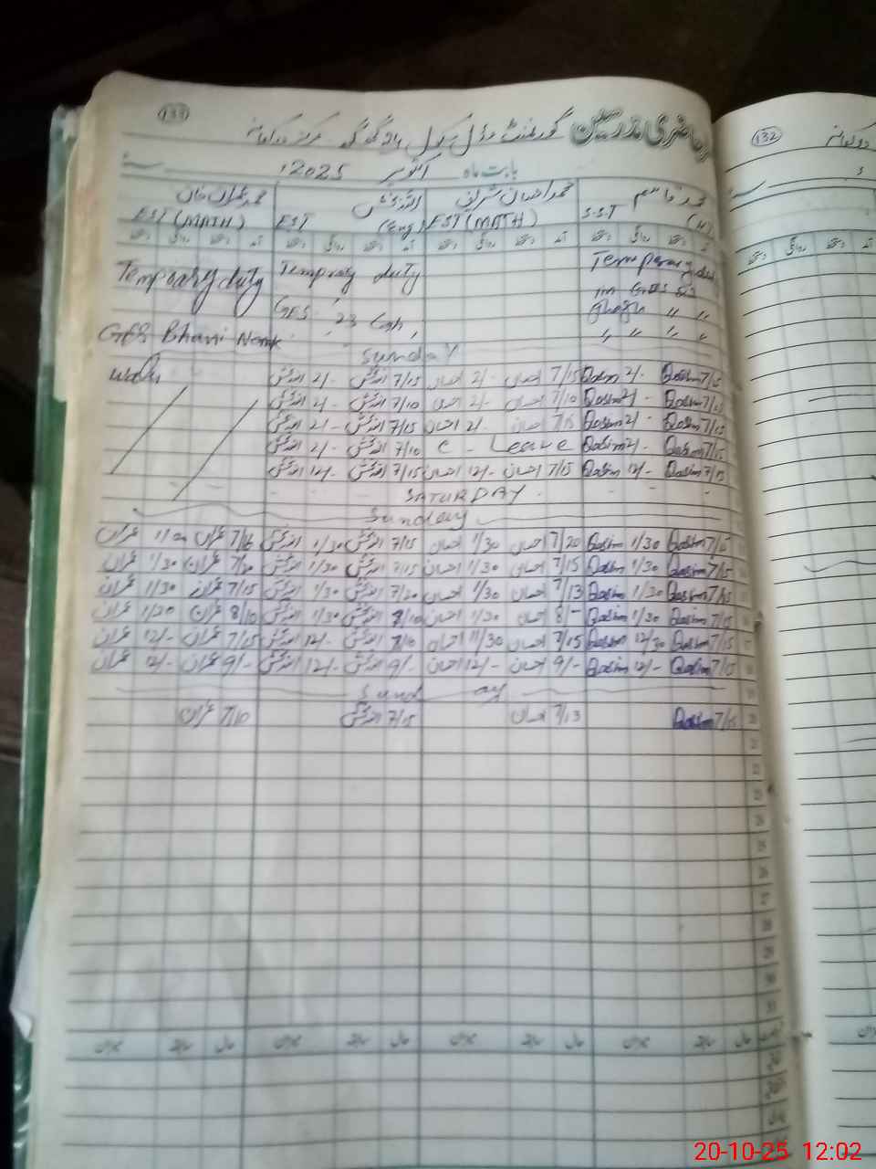 | Leave | Duty | Absent | Maternity | Medical | Ex- Pak |
