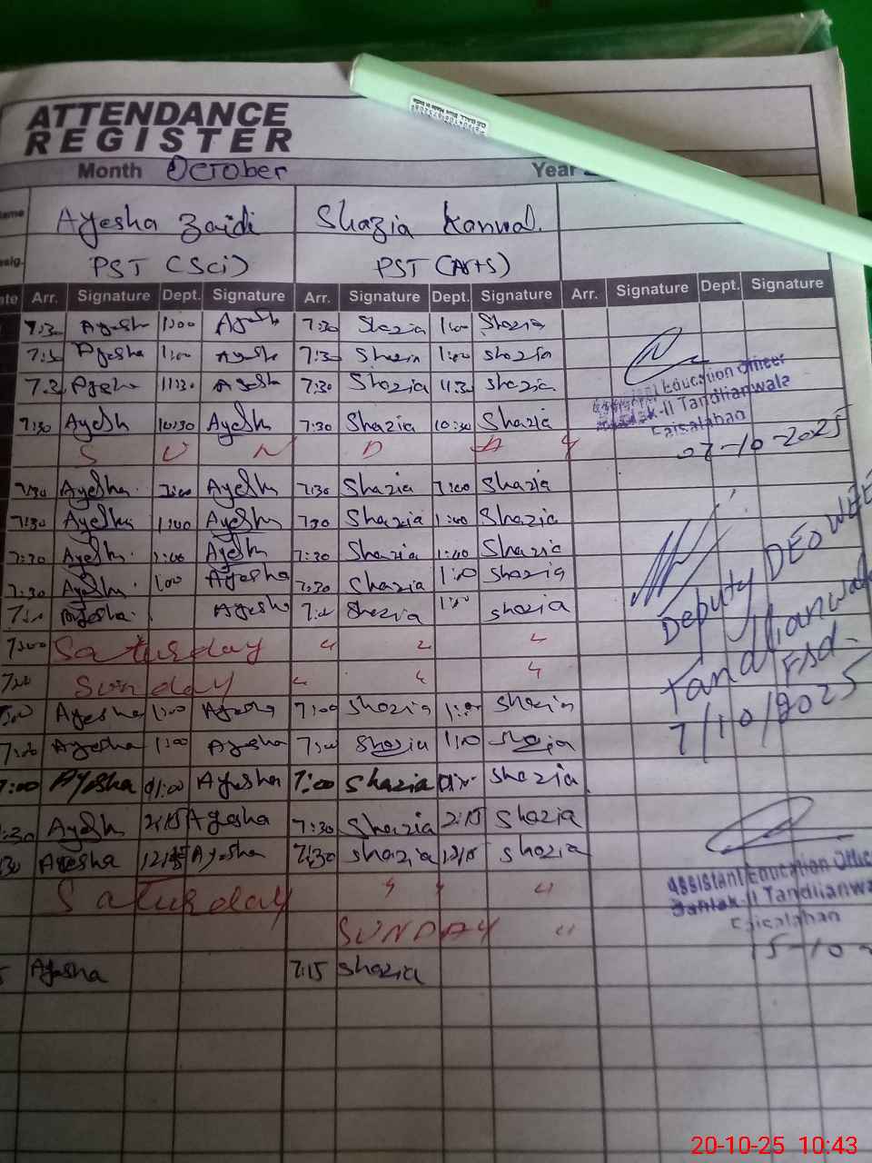 | Name: AY**** ZA**** Designation: (School Headmaster's/Headmistress's) ESE (SCI & MATH ) Phone/Cell Number: 03**** |