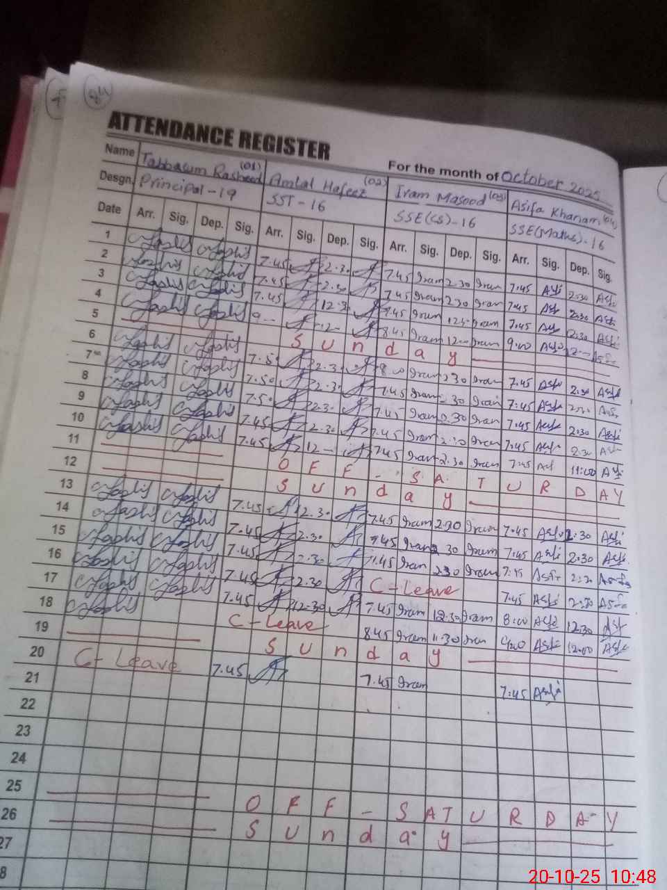 | CNIC | Full Name | Designation | R/C | Absence during last cal. month |