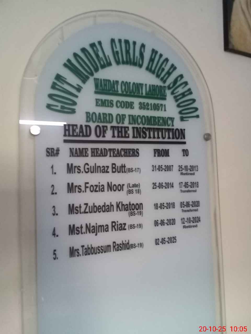 | EMIS Code: 35210571 | Name of School: GGHS MODEL WAHDAT COLONY | |||