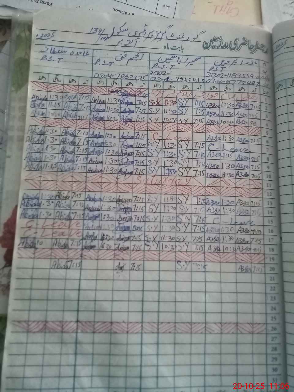 | Name: AZ**** PA**** Designation: (School Headmaster's/Headmistress's) PST/PTC/JV Phone/Cell Number: 03**** |
