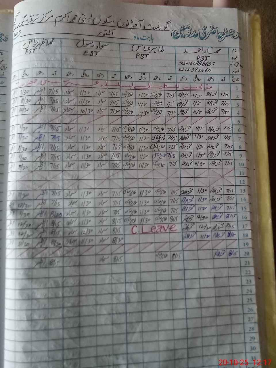 | Name: MU**** AH**** Designation: (School Headmaster's/Headmistress's) PST Phone/Cell Number: 03**** |