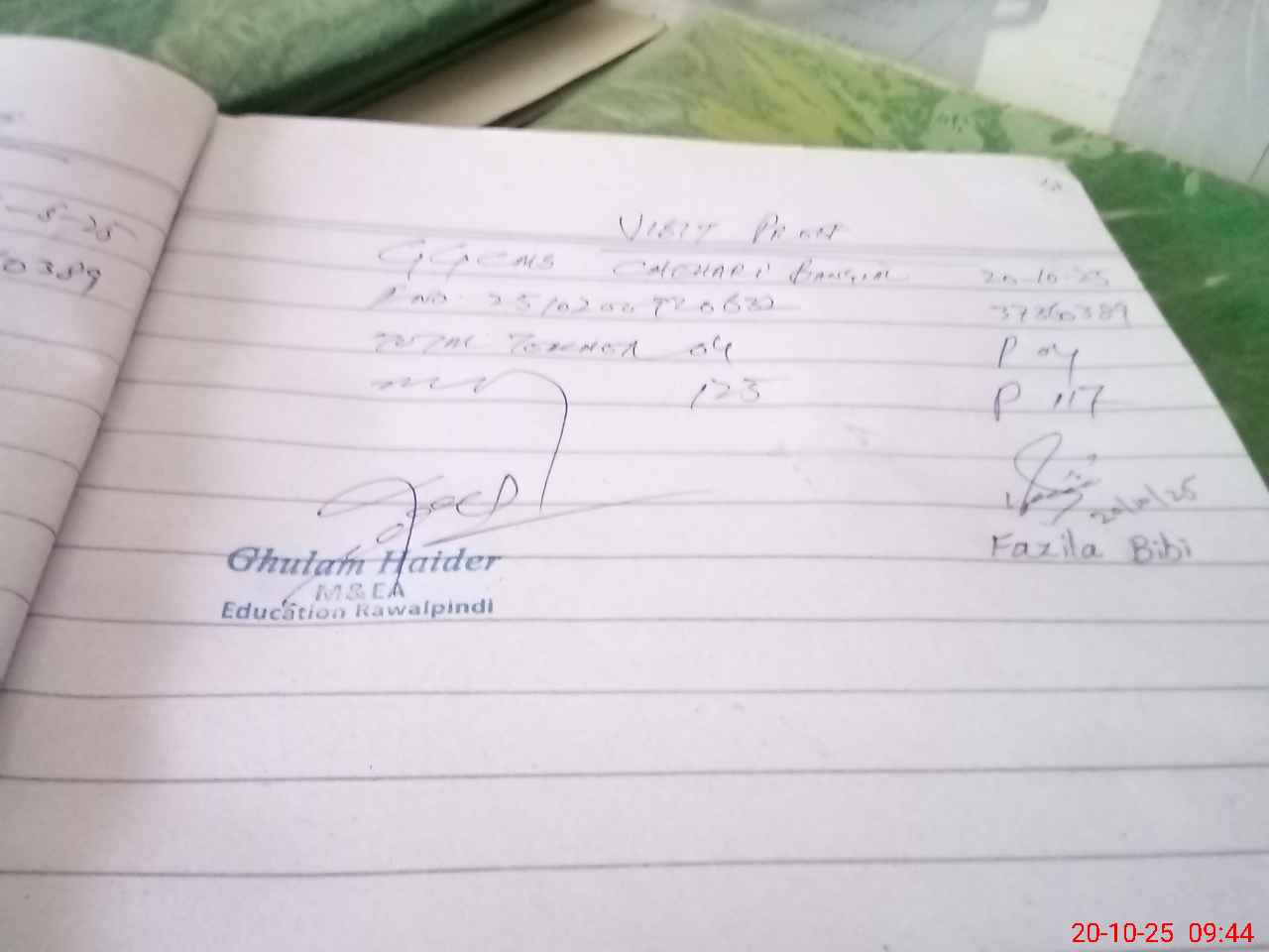 | Name: FA**** BI**** Designation: (School Headmaster's/Headmistress's) SST (Arts) Phone/Cell Number: 03**** |