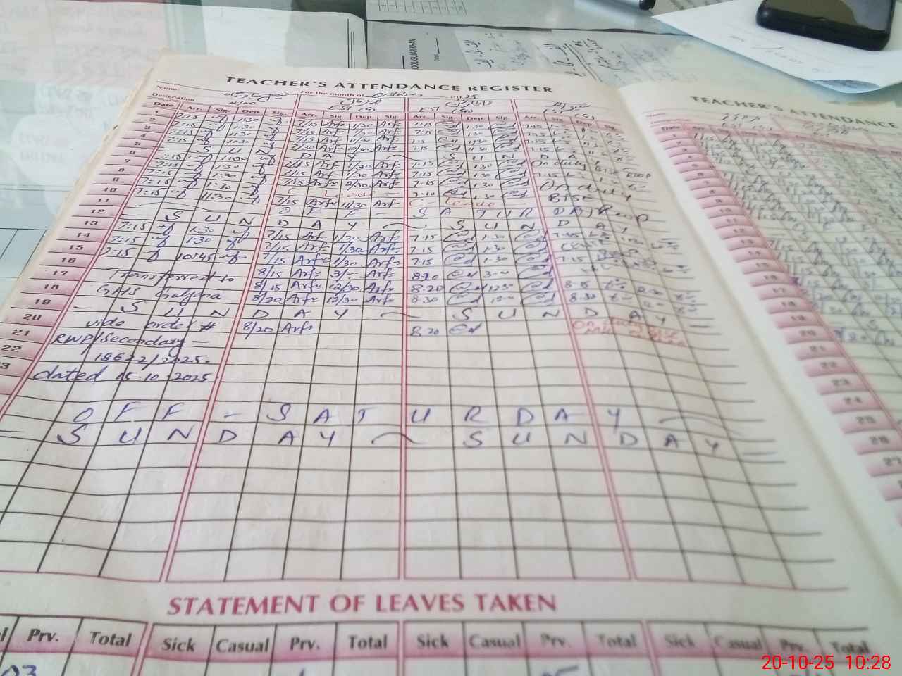 | Leave | Duty | Absent | Maternity | Medical | Ex- Pak |