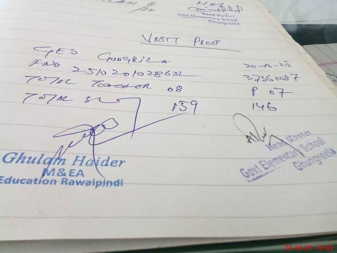 | Name: Fa**** Ib**** Sh**** Designation: (School Headmaster's/Headmistress's) Sst Phone/Cell Number: 03**** |