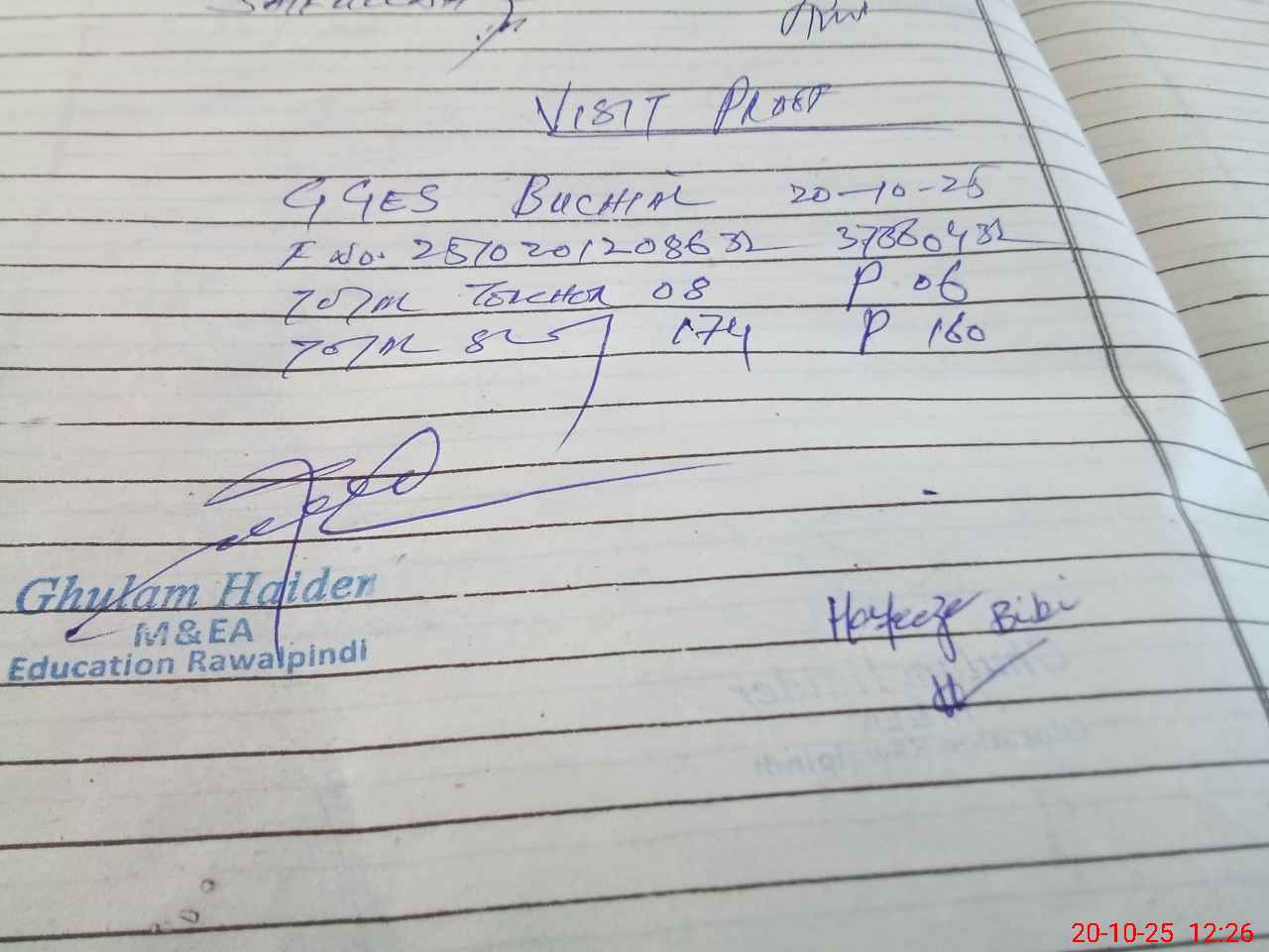 | Name: SH**** FA**** Designation: (School Headmaster's/Headmistress's) S.S.T.(SC) Phone/Cell Number: 03**** |