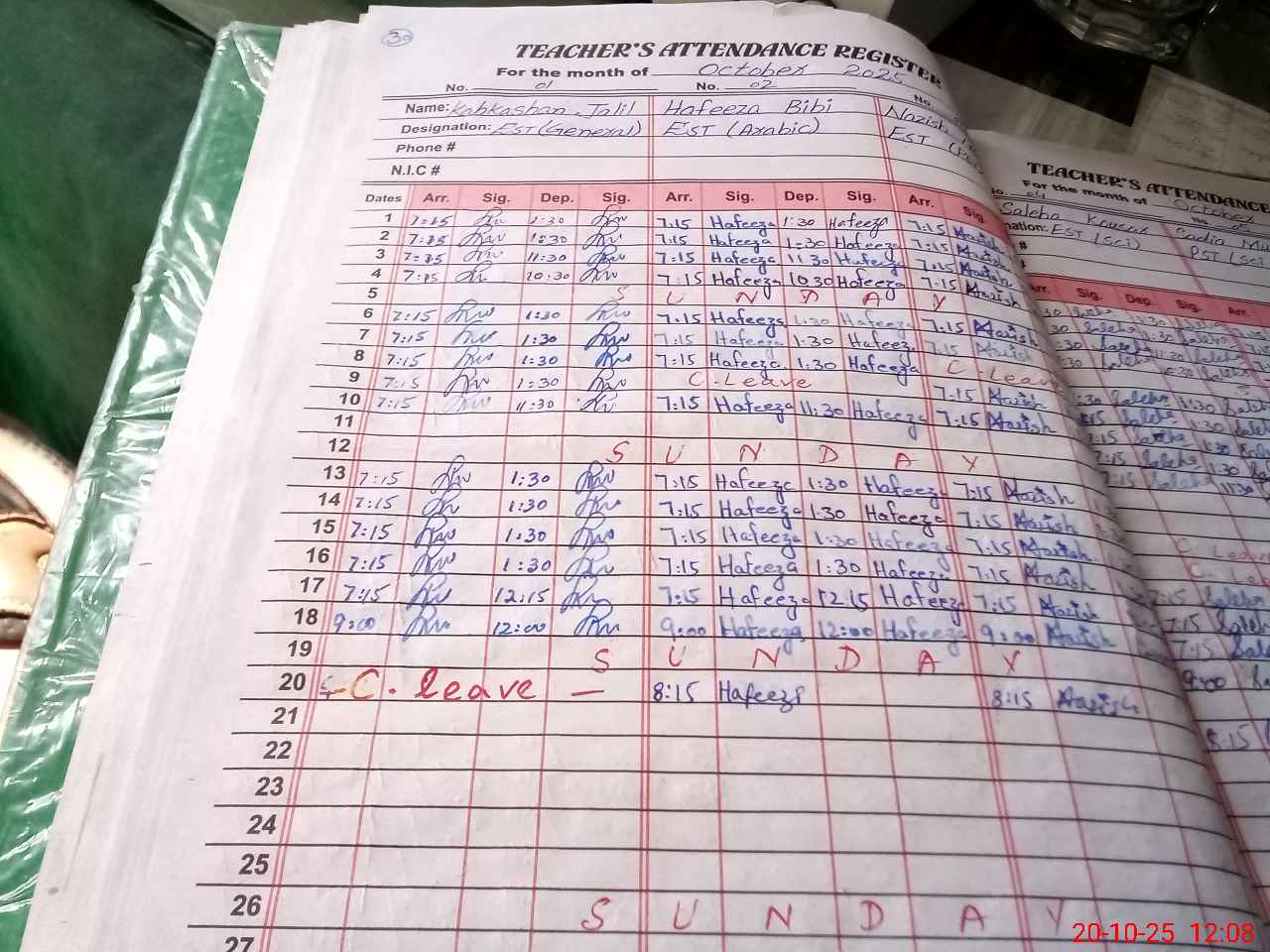 | CNIC | Full Name | Designation | R/C | Absence During Last Calender Month |