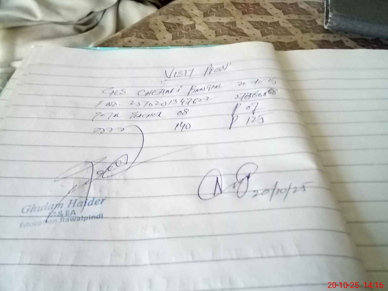 | Monitoring Date: 20-10-2025 | Start Time: 20-10-2025 01:34 PM | End Time: 20-10-2025 02:17 PM | Name of MEA: Gh**** Ha**** | |