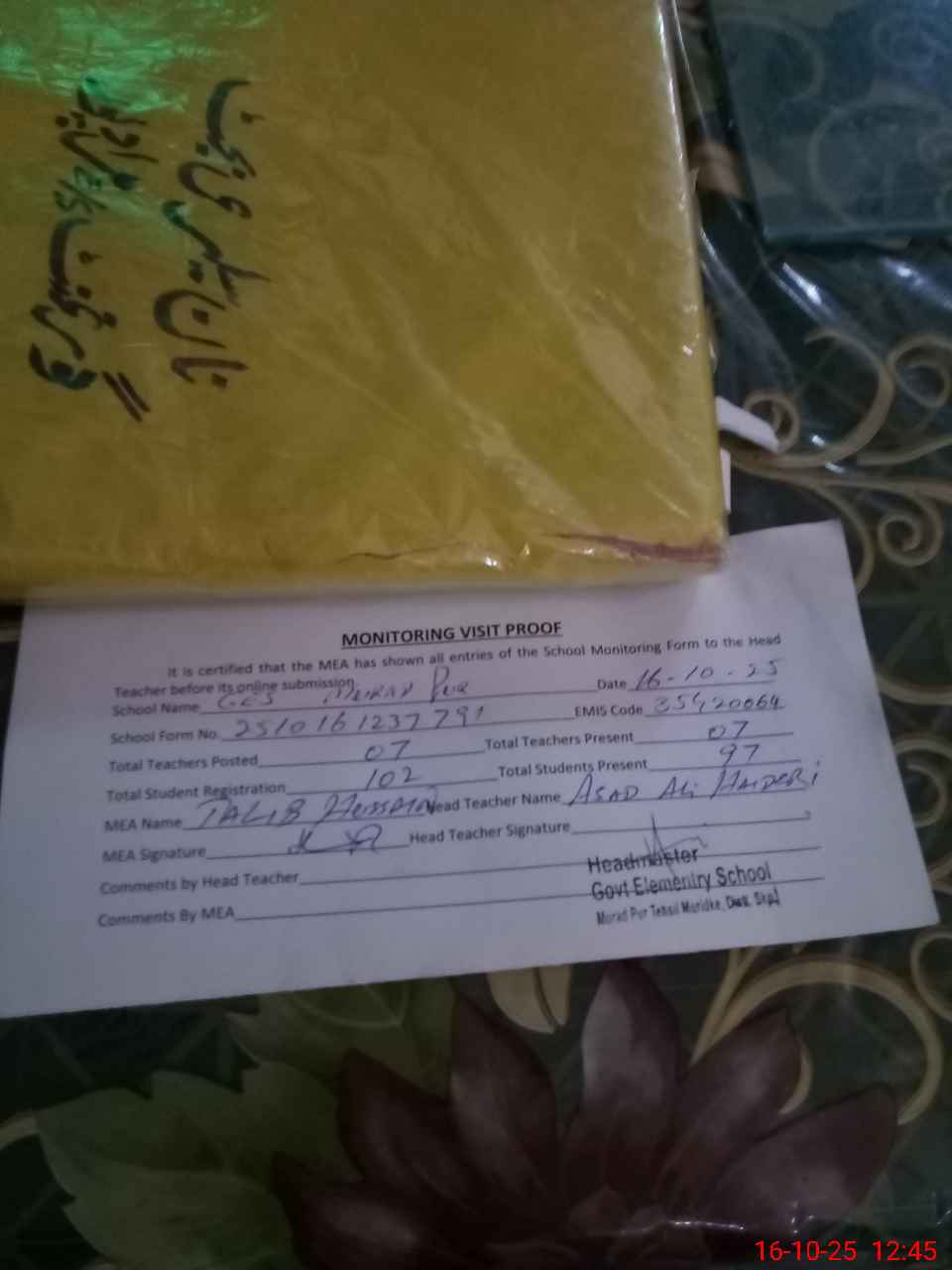 | EMIS Code: 35420064 | Name of School: GES MURAD PUR | |||
