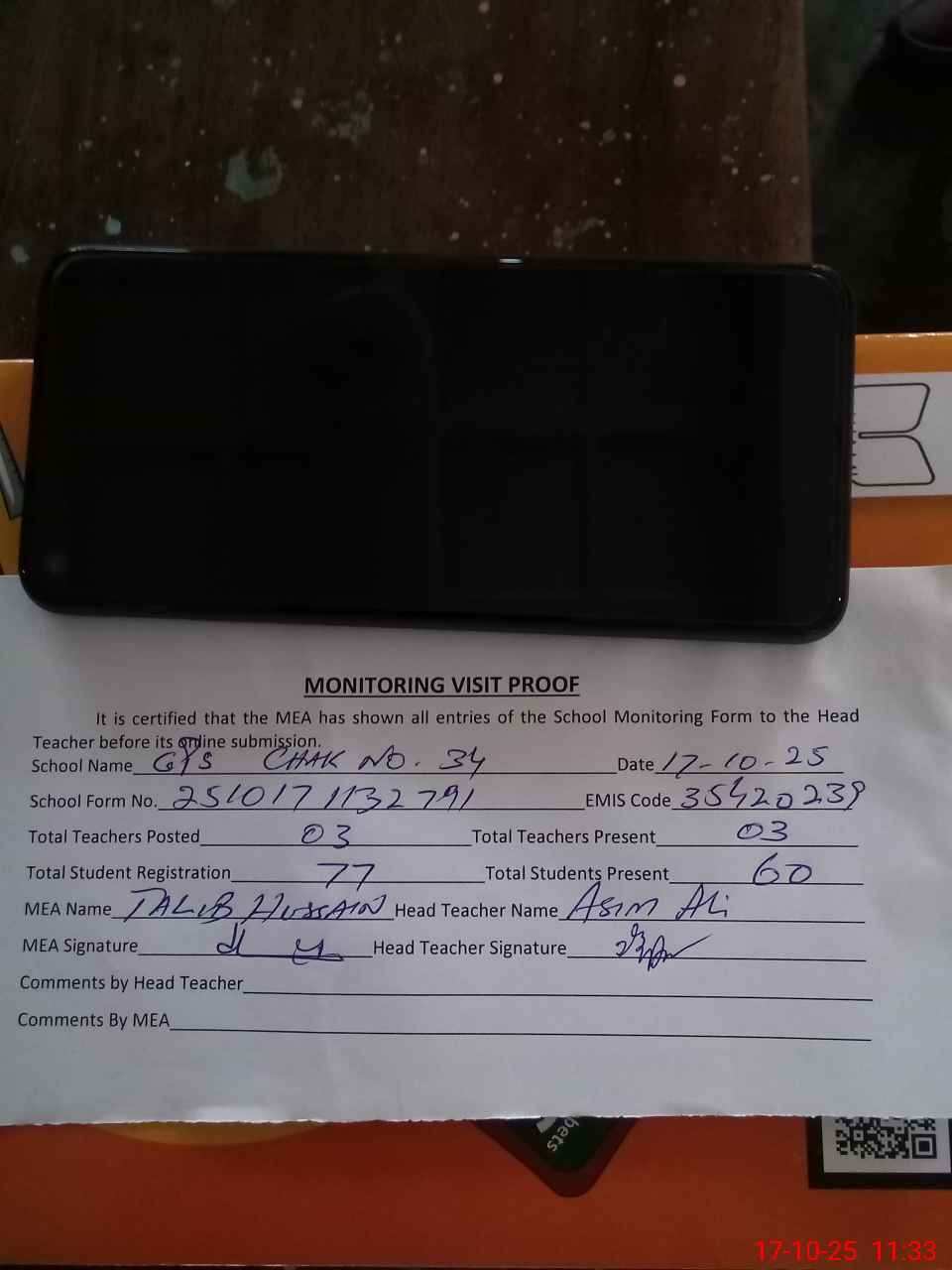 | EMIS Code: 35420239 | Name of School: GPS CHAK 34 MURIDKE | |||