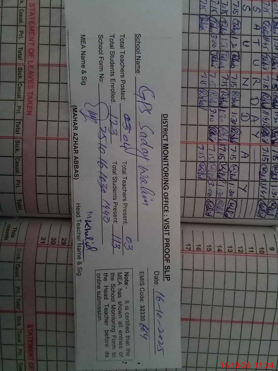 | EMIS Code: 32330664 | Name of School: GPS SADHAY WAHIN | |||