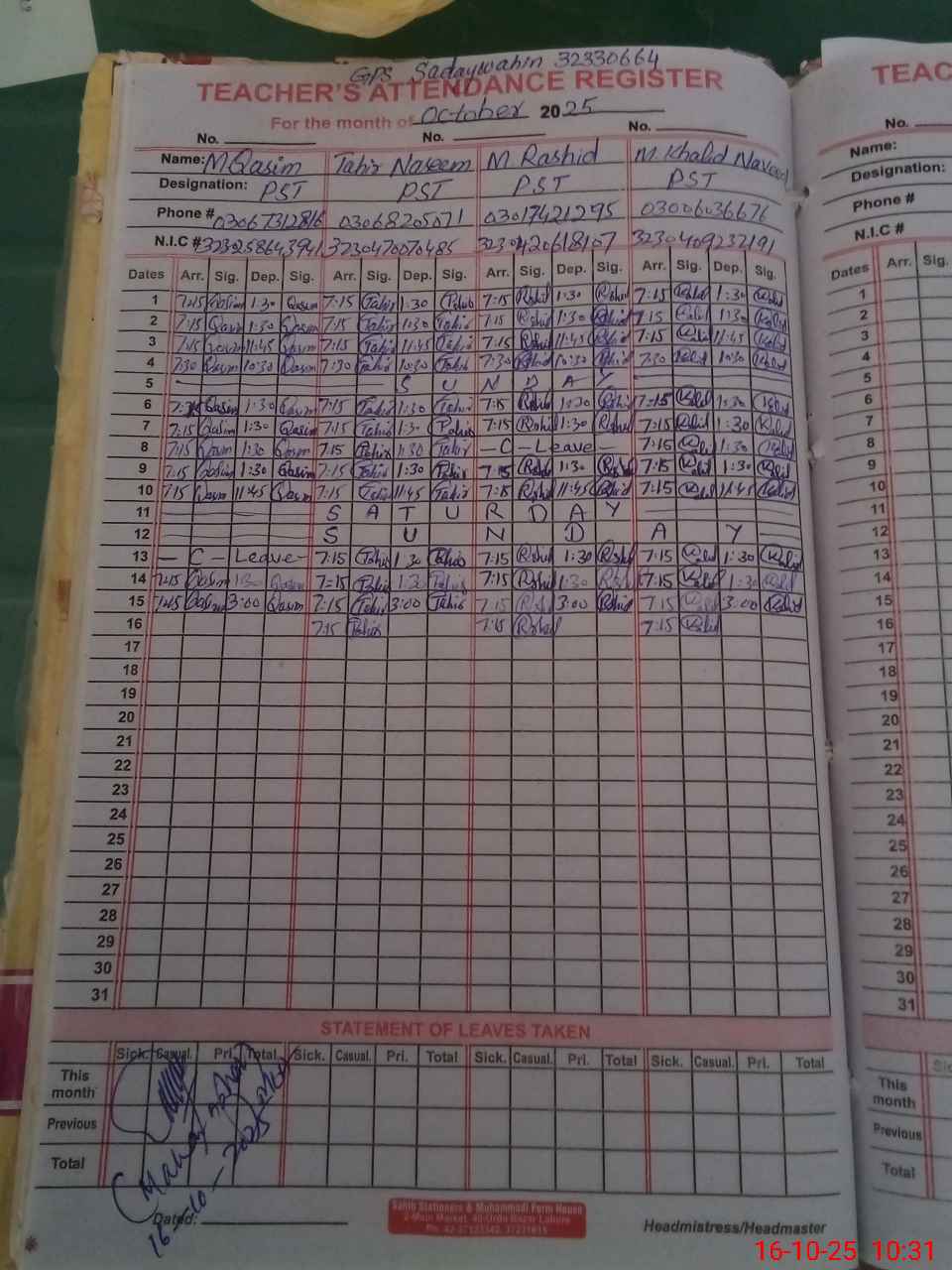 | Name: M.**** Designation: (School Headmaster's/Headmistress's) PST Phone/Cell Number: 03**** |