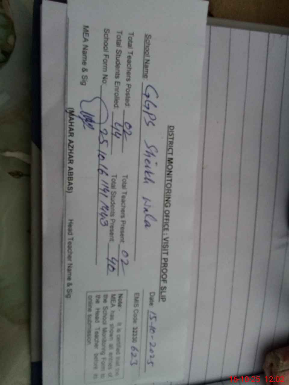 | EMIS Code: 32330623 | Name of School: GGPS SHEIKH WALA | |||