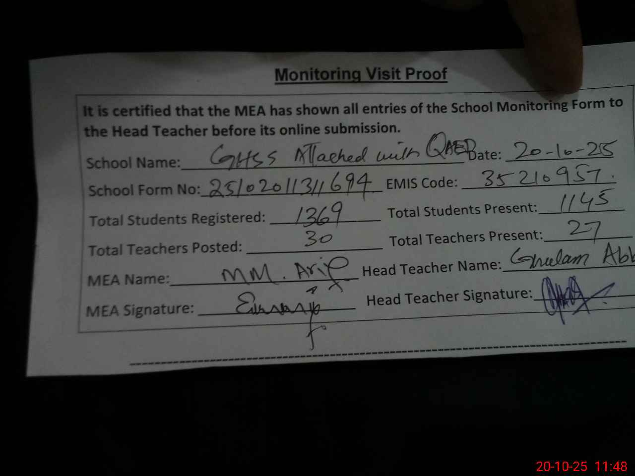 | Certified that this School was Inspected by the Undersigned MEA/DMO Today and the Information Stated Above is as Per Record. | |||||