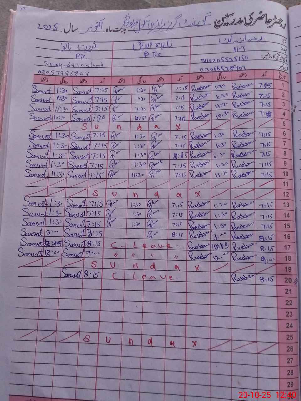 | Name: Ru**** Sa**** Designation: (School Headmaster's/Headmistress's) PST Phone/Cell Number: 03**** |