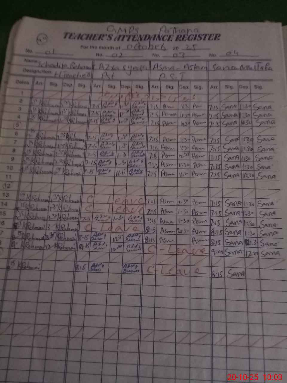| Name: Kh**** Re**** Designation: (School Headmaster's/Headmistress's) PST Phone/Cell Number: 03**** |