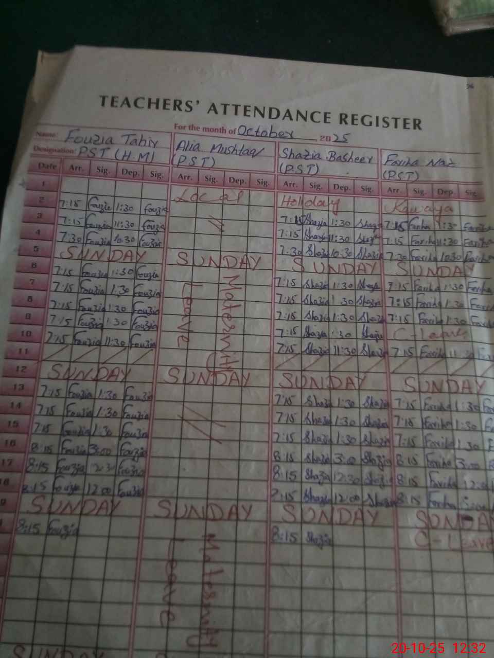| 31**** | Fa**** Na**** | PST | Regular | 2 | 0 | 0 | 0 | 0 | 0 | 0 | 0 | 2 | Casual |