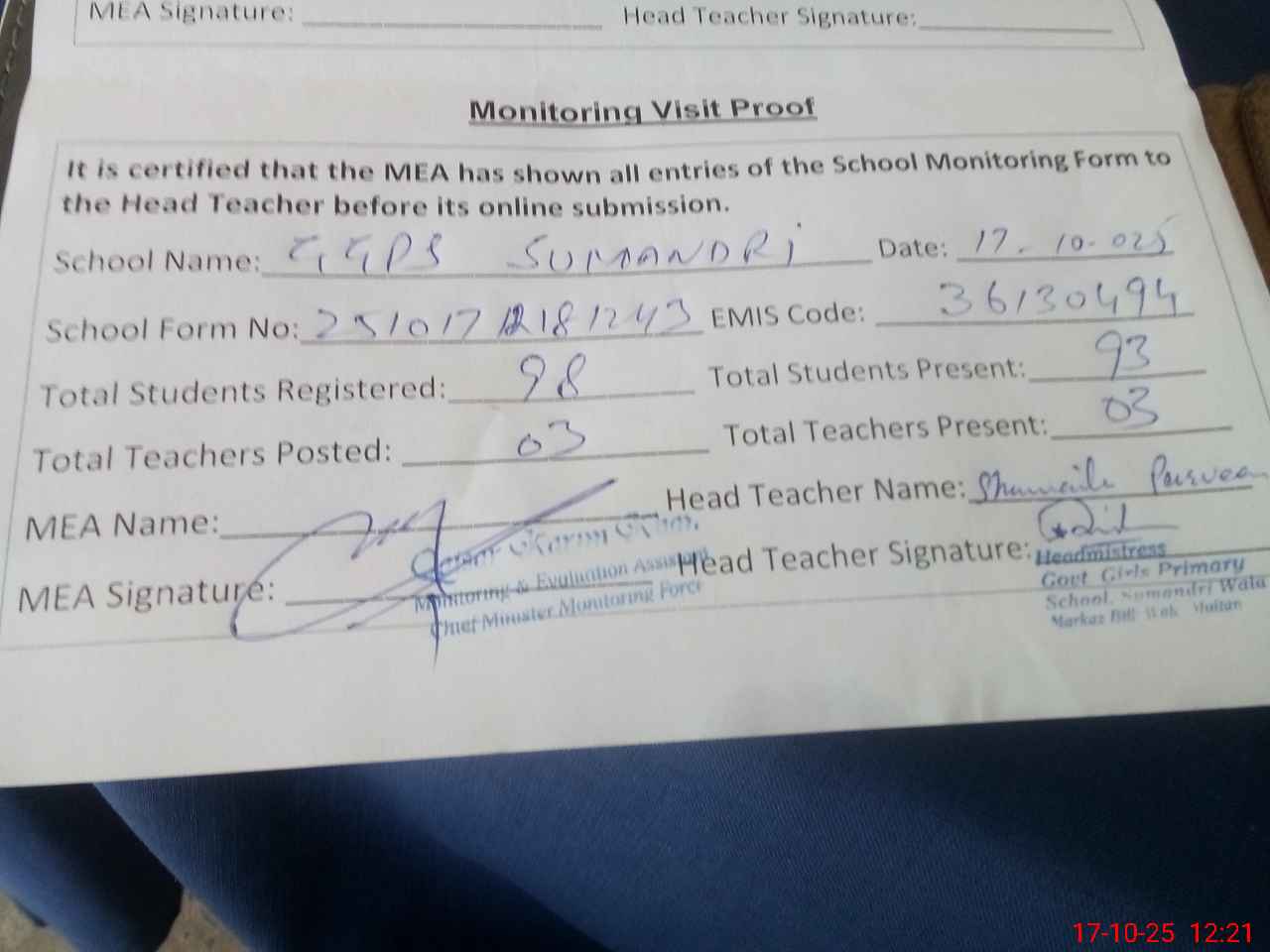 | EMIS Code: 36130494 | Name of School: GGPS SAMUNDARI WALA | |||