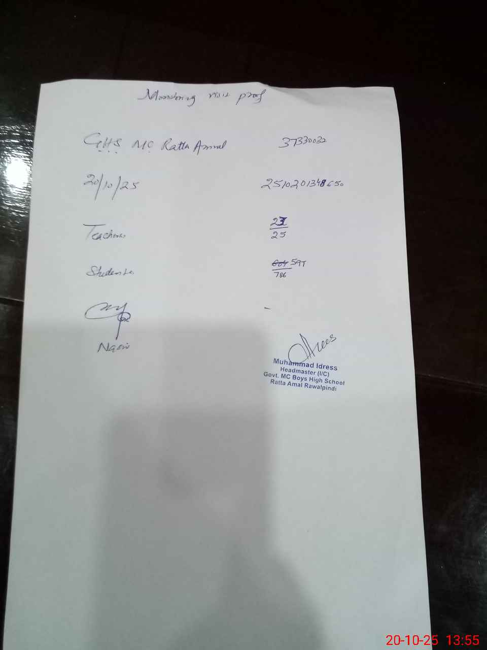 | EMIS Code: 37330032 | Name of School: GHS MC RATTA AMRAL RAWALPINDI | |||