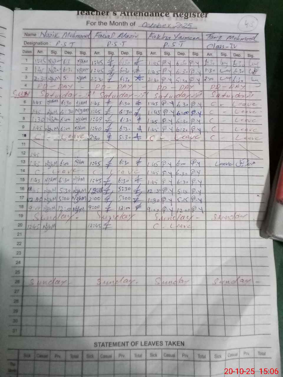 | 37**** | So**** Kh**** | PST | Regular | 0 | 0 | 0 | 0 | 0 | 0 | 0 | 0 | 0 | Maternity |