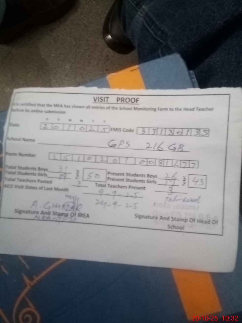 | EMIS Code: 33130135 | Name of School: GPS 216 GB II | |||